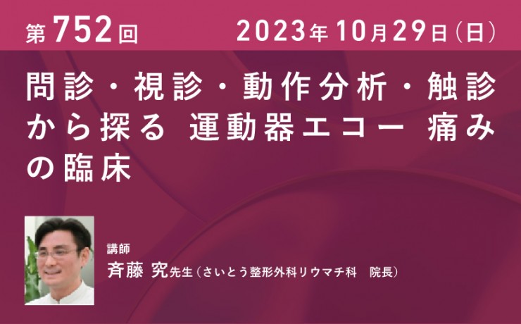 2023年10月29日(日)【第752回】問診・視診・動作分析・触診から探る 運動器エコー 痛みの臨床