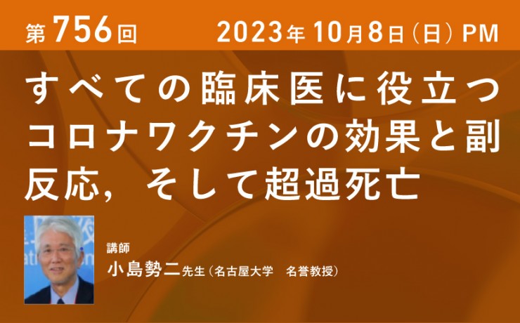 2023年10月8日(日)PM【第756回】すべての臨床医に役立つコロナワクチンの効果と副反応,そして超過死亡