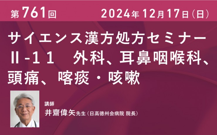 2023年12月17日(日)【第761回】サイエンス漢方処方セミナーⅡ-11 外科、耳鼻咽喉科、頭痛、喀痰・咳嗽