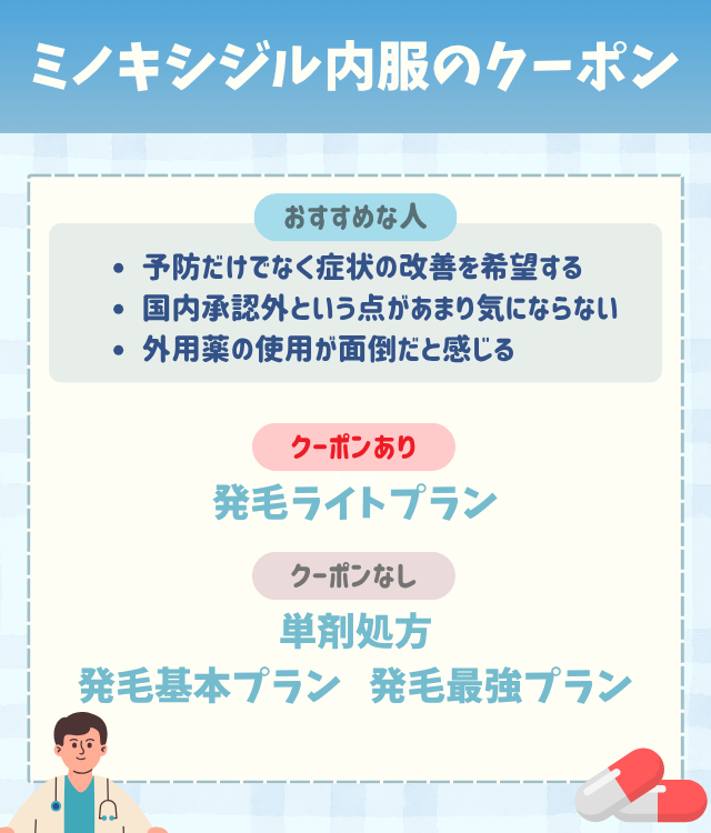 ミノキシジル内服はクーポンありの「発毛ライトプラン」がおすすめ