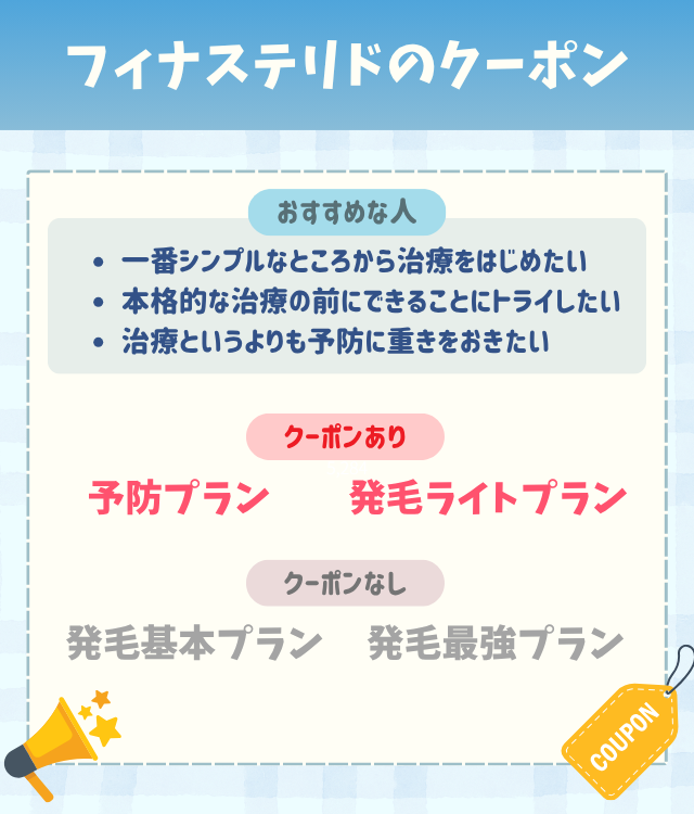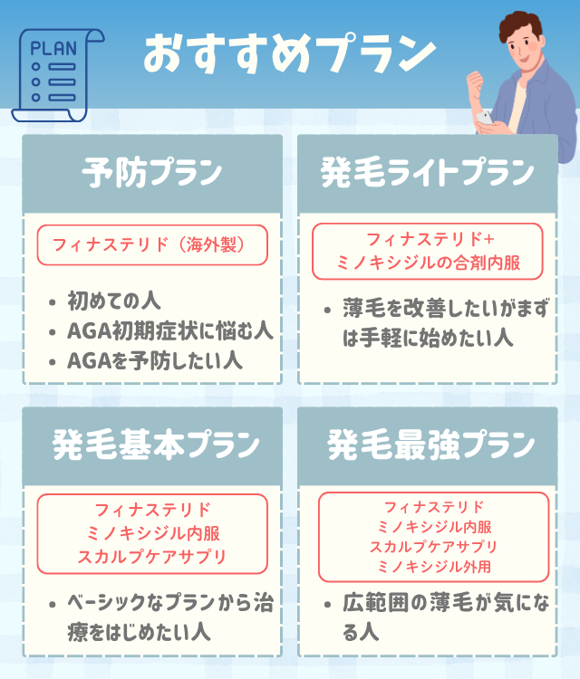 フィナステリドの処方が受けられるプランは、以下の4つである。