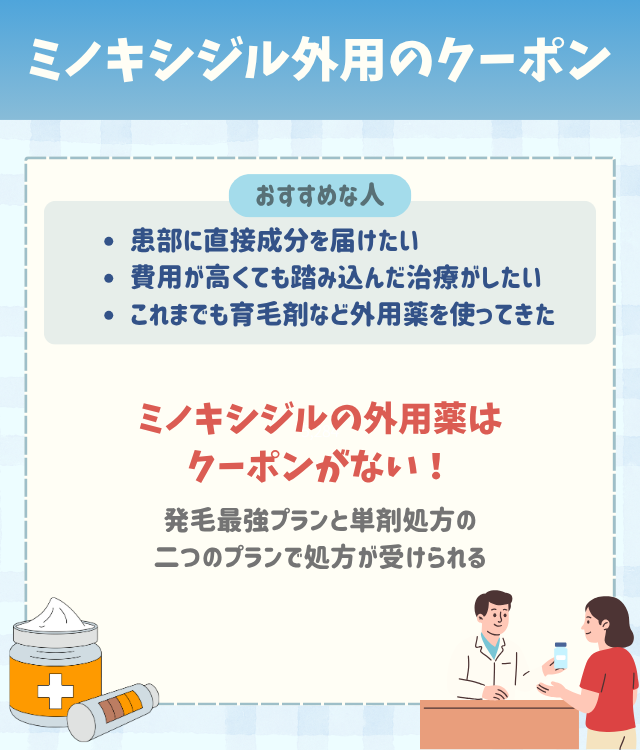 ミノキシジル外用の処方が受けられるプランは、以下の2つだ。