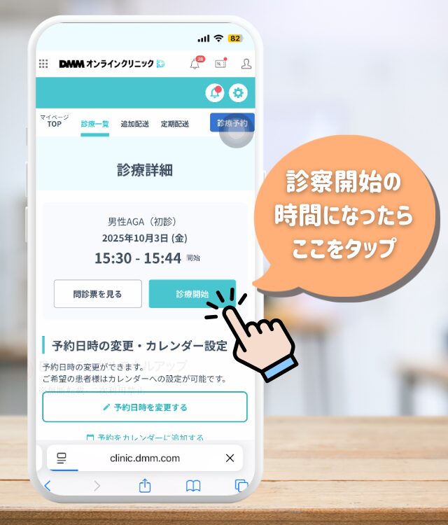 予約時間になると、マイページ上に「診察開始」ボタンが表示される。