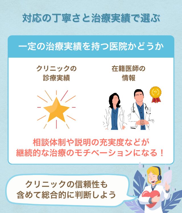 ③対応の丁寧さとクリニックの治療実績で選ぶ