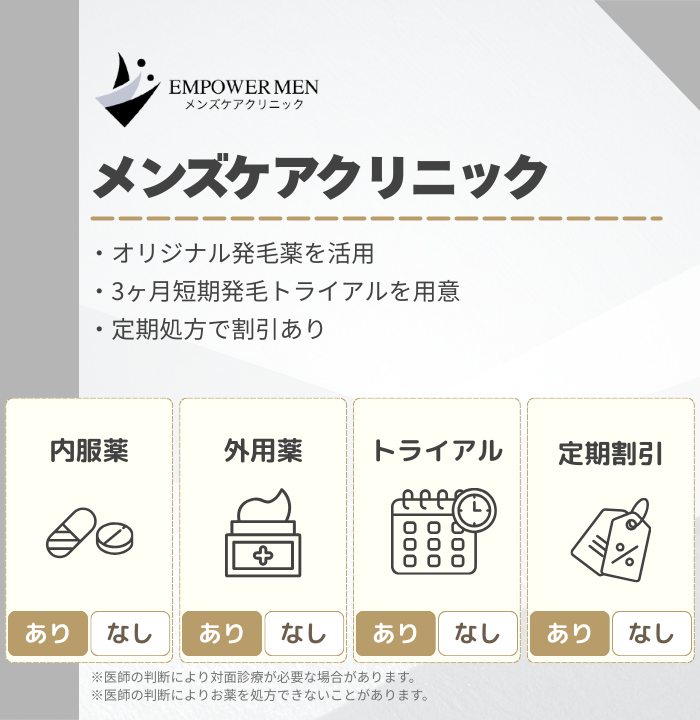 また、AGA治療やオンライン診療という分野において一定の治療実績を持つクリニックであるかどうかも確認しておきたいポイントの1つだ。