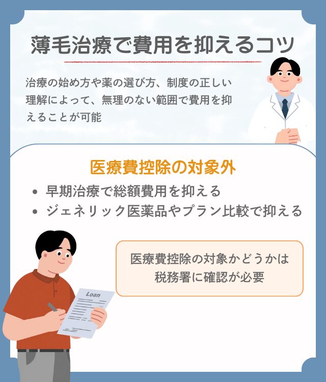 保険適用外となる薄毛治療において、治療効果を維持しながら出費を抑えるために知っておきたい考え方や注意点を解説する。