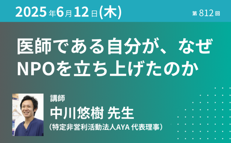 「医師である自分が、なぜNPOを立ち上げたのか」|2025年6月12日(木)【第812回】
