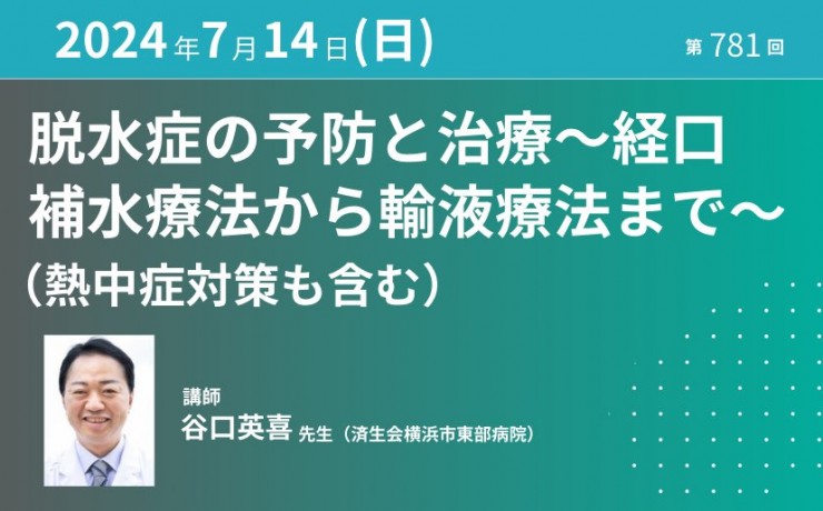 脱水症の予防と治療―経口補水療法から輸液療法までー( 熱中症対策も含む)|7月14日(日)【第781回】