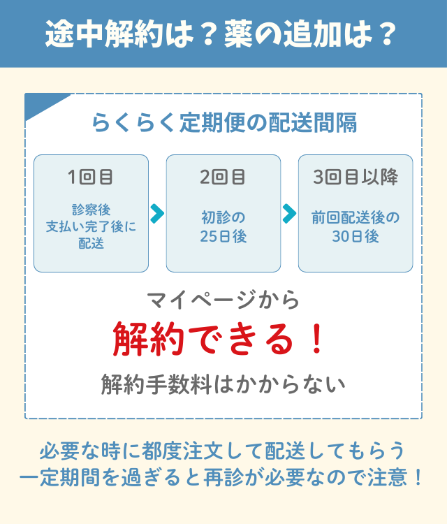 らくらく定期便は途中解約が可能で、解約手数料もかからない。発送の目安は次のとおりだ。
