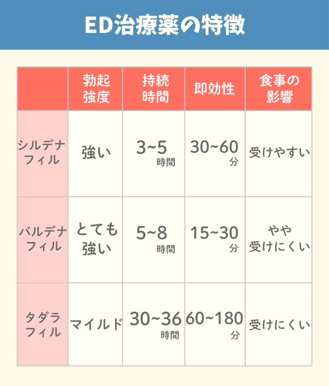 - 成分別ED治療薬の違いや特徴