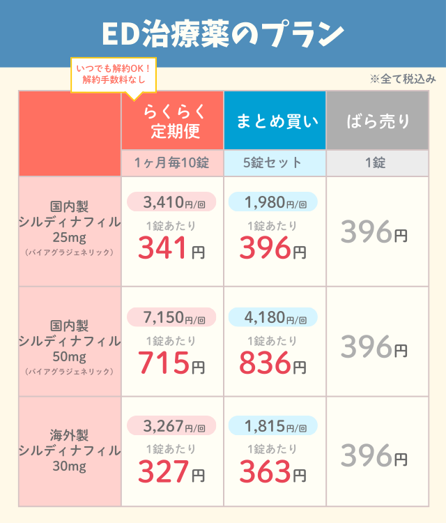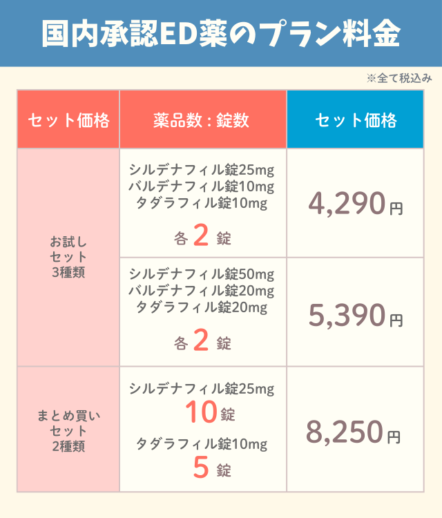国内で承認されているED治療薬を組み合わせた料金プラン