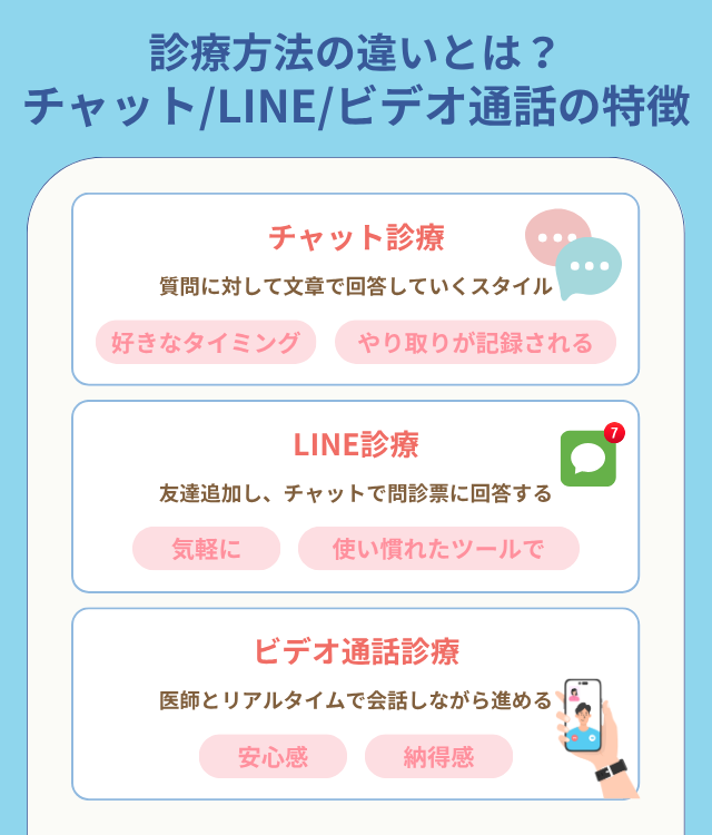 診療方法の違いとは?チャット・LINE・ビデオ通話の特徴