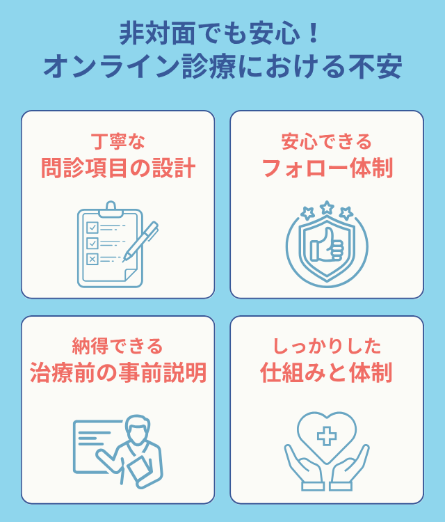 オンラインで医師と顔を合わせずに薬を処方してもらうことに対して、不安を感じる人も少なくない。その不安を軽減するため、多くのクリニックではいくつかの工夫が施されている。