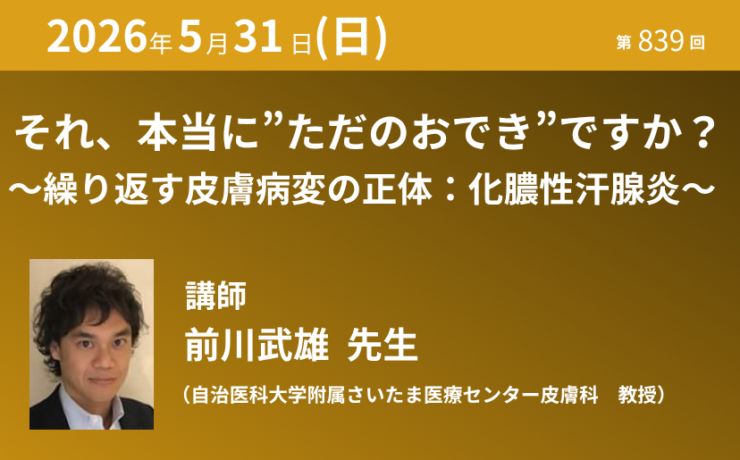 2021.11.09 来年1月30日に開催予定のセミナー『下肢静脈瘤・下腿潰瘍』の内容をアップしました。 来年1月30日に開催予定の医療技術セミナー『下肢静脈瘤・下腿潰瘍の診断と治療戦略』の内容をアップしました。 皆さま、奮ってご参加ください。 来年1月16日に開催予定のセミナー『骨粗鬆症と歯、慢性疼痛』の内容をアップしました。 来年2月20日に開催予定のセミナー『がん予防:胃がんと大腸がん』の内容をアップしました。 最近のお知らせお知らせ一覧 2026.04.14 2026年7月26日に、『神経診療が自信に変わるクリニカルパールズ』の開催が決まりました。 2026.04.13 2026年4月26日午後に、『認定医療法人制度のご案内』の開催が決まりました。 2026.03.27 2026年4月26日に、『呼気中揮発性有機化合物を用いた診断システムの可能性について』の開催が決まりました。 2026.03.23 2026年5月24日に、『画像の前にここまで分かる!問診×フィジカルで詰める呼吸器診療』の開催が決まりました。 2026.03.10 2026年3月29日(日)に、『現場ですぐ使える!痛みの原因と対応のポイント』の開催が決まりました。