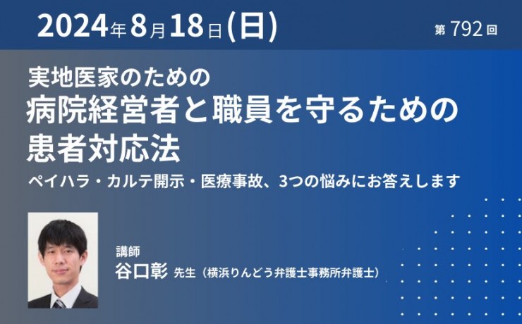 実地医家のための病院経営者と職員を守るための患者対応法|2024年8月18日(日)【第792回】