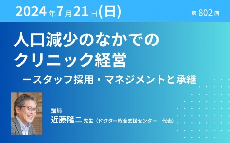 人口減少のなかでのクリニック経営 -スタッフ採用・マネジメントと承継|2024年7月21日(日)【第802回】