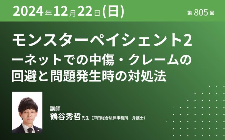 モンスターペイシェント2-ネットでの中傷・クレームの回避と 問題発生時の対処法|2024年12月22日(日)【第805回】