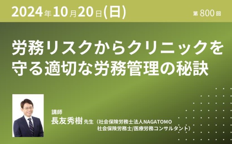 労務リスクからクリニックを守る適切な労務管理の秘訣|2024年10月20日(日)【第800回】