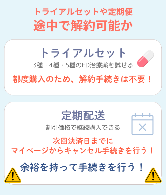 トライアルセットや定期便は途中解約できるのか